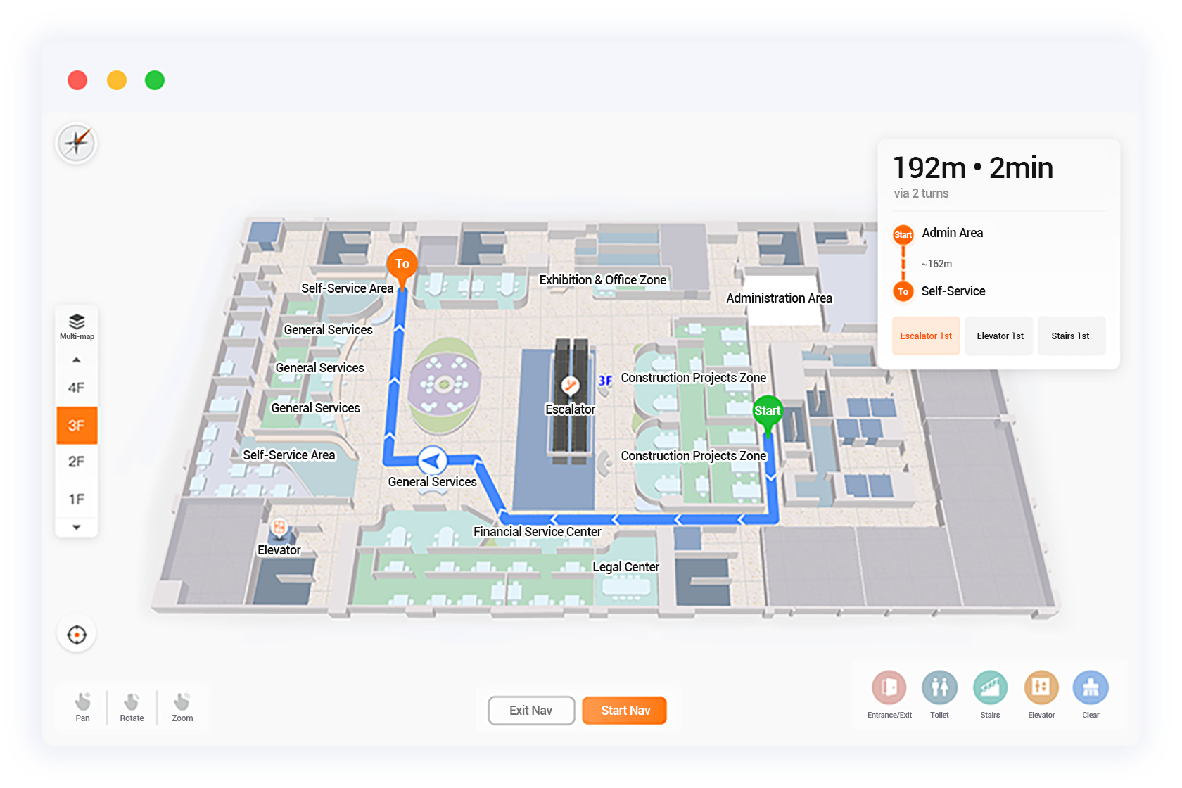 Build digital indoor maps of airports, provide flight route queries, quick navigation of infrastructure and other services, reducing the time for passengers to find routes and parking, and improving the service level of airports.