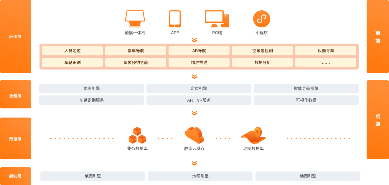 Weibang’s indoor parking solution addresses on-site user needs with a custom parking map, combining iBeacon positioning and camera recognition to enable guided parking, reverse car-finding, and online payment,